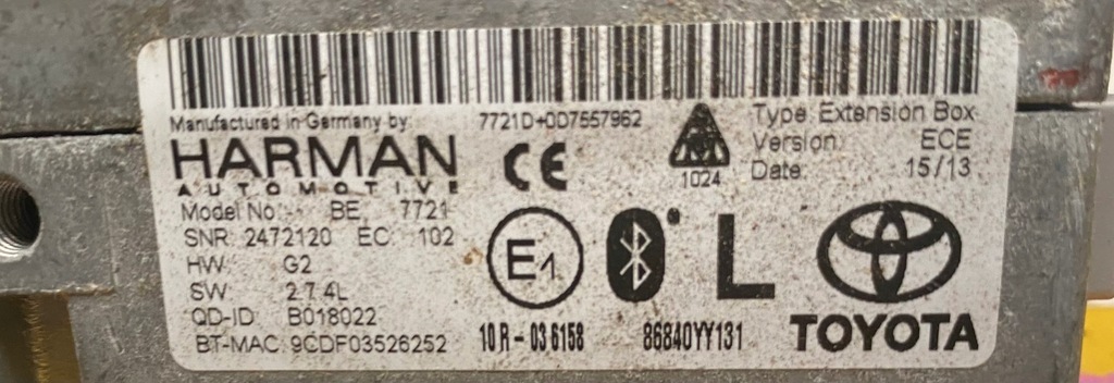 AMPLIFICATORE TOYOTA HARMAN 10R036158 PER QUESTO MODELLO IN BUONE CONDIZIONI COME DA FOTO.