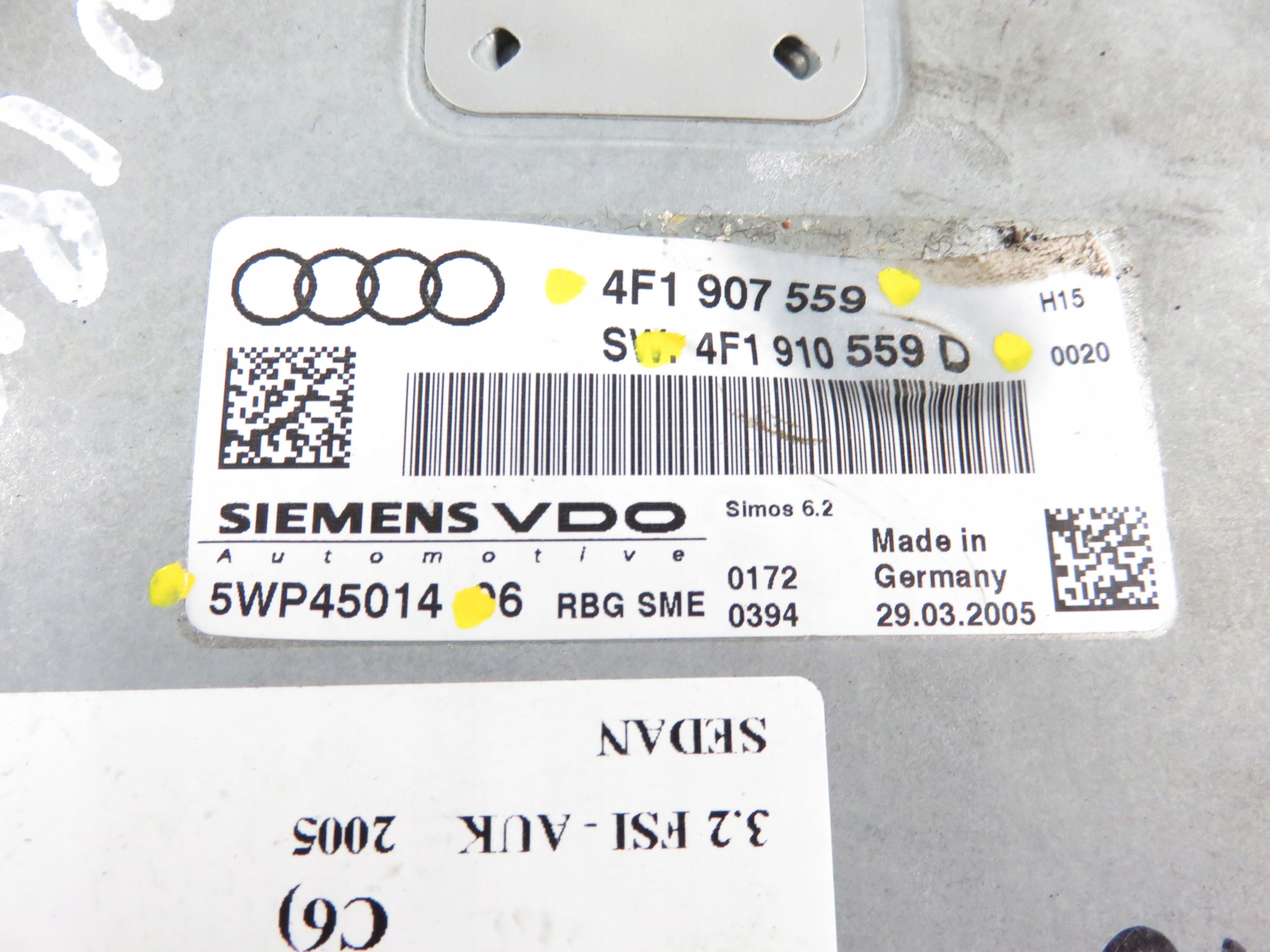 CONTROLLER MOTOREAUDIA6 (4F2, C6)20053.2 FSI - AUKSEDANNumero porte: 4Cambio: SEQUENZIALE AUTOMATICO 7 MARCE Matricola: 4F1907559 ; 4F1910559D ; 5WP45014 ID parte: M831711