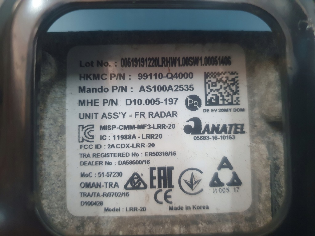 Oggetto dell'asta è un radar/sensore originale per Kia Niro EV Electric. Il radar non è stato riparato, è in ottime condizioni, visibili nelle foto allegate all'asta.
